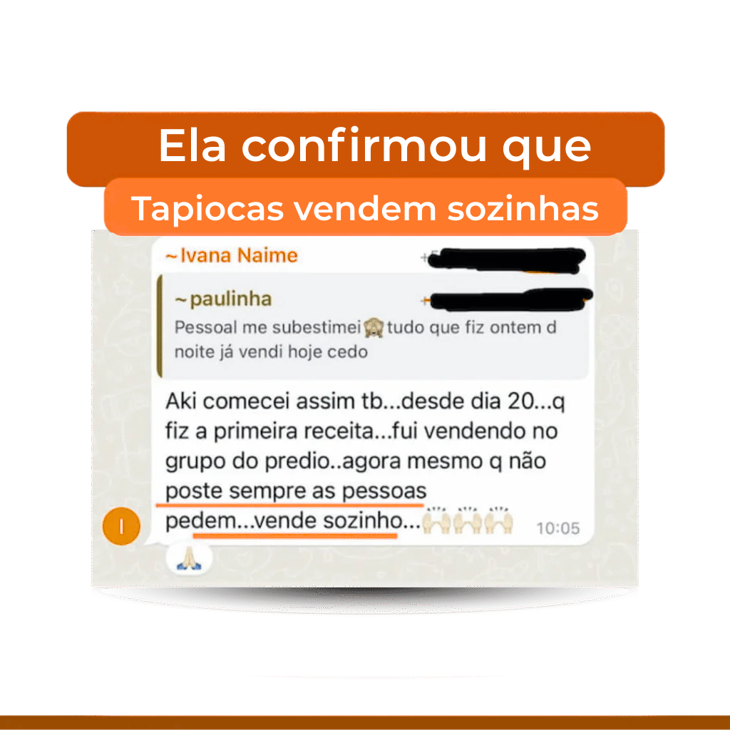 Depois é só seguir o passo a passo detalhado para começar a vender e multiplicar suas vendas na cozinha ainda essa semana com os tapiocas.